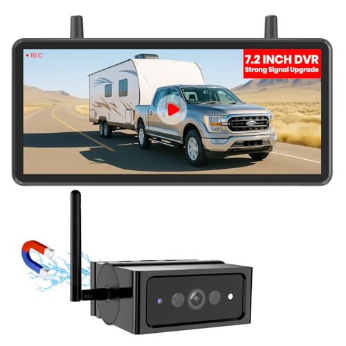 AUTO-VOX Magnetic Wireless Reversing Camera Kit: 7.2" 1080P HD DVR Recording Monitor, 1 Min Install Dual Antenna Motorhome Reverse Camera Kit, IP69K Waterproof with IR Night Vision for Caravan,Van