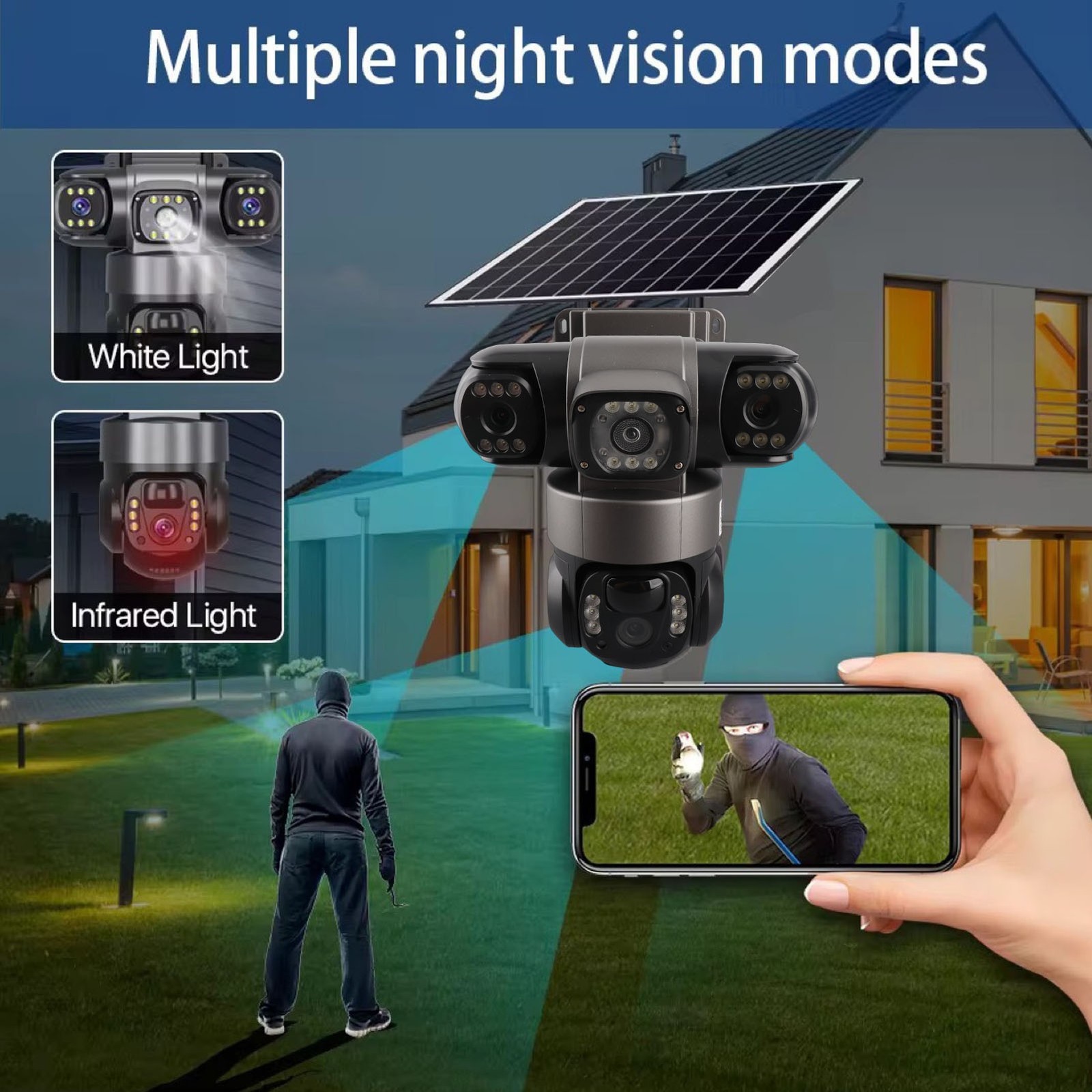 Triple Lens Solar Wireless Security Camera For V380 PRO 3240x1920 2MP AI Mot LW