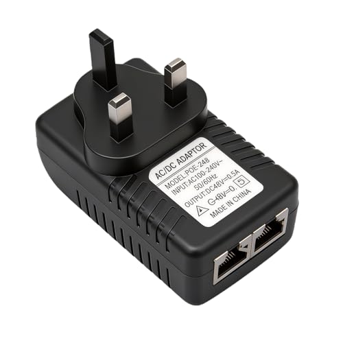 Lueden 48V 0.5A POE Injector DC Power Supply Adapter Over Ethernet Adapter with UK Plug POE Adapter UK Wall Plug for 12V 24V 48V IP Phone Wireless Access Points Security Cameras Devices, Black