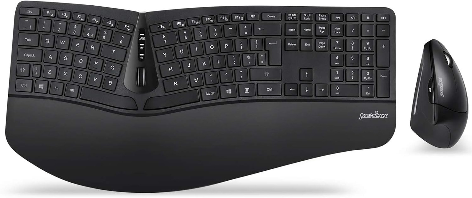 Perixx Periduo-605, Wireless Ergonomic Split Keyboard and Vertical Mouse Combo, Adjustable Palm Rest and Membrane Low Profile Keys, UK QWERTY