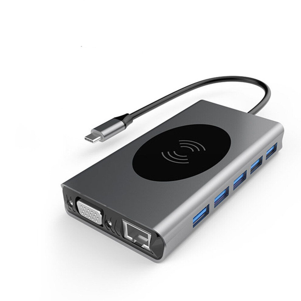 13 in 1 USB Type C Hub Type-C To HDMI 4K VGA Adapter RJ45 Lan Ethernet USB 3.0 SD TF 3.5mm Wireless Mobile Phone Charger