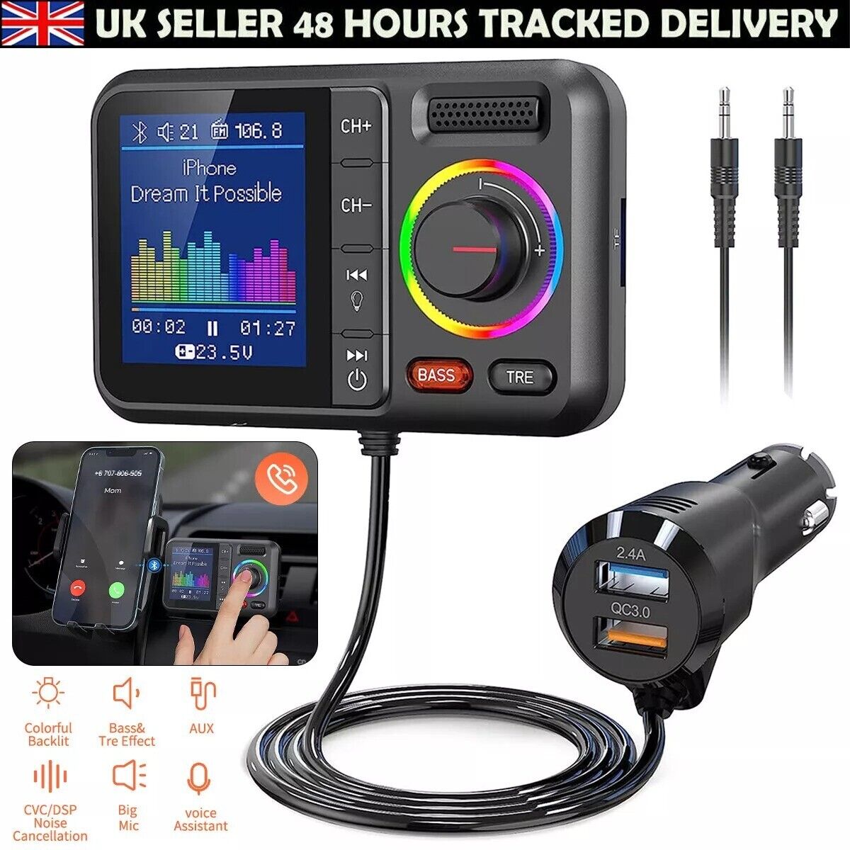 Car FM Wireless Bluetooth Transmitter MP3 Player USB Fast Charger Adapter UK