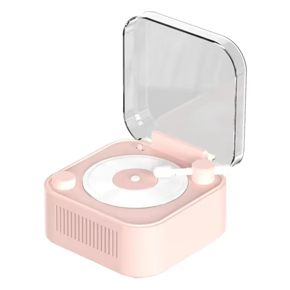Vintage Turntable Wireless Bluetooth Speaker Long Battery Pink
