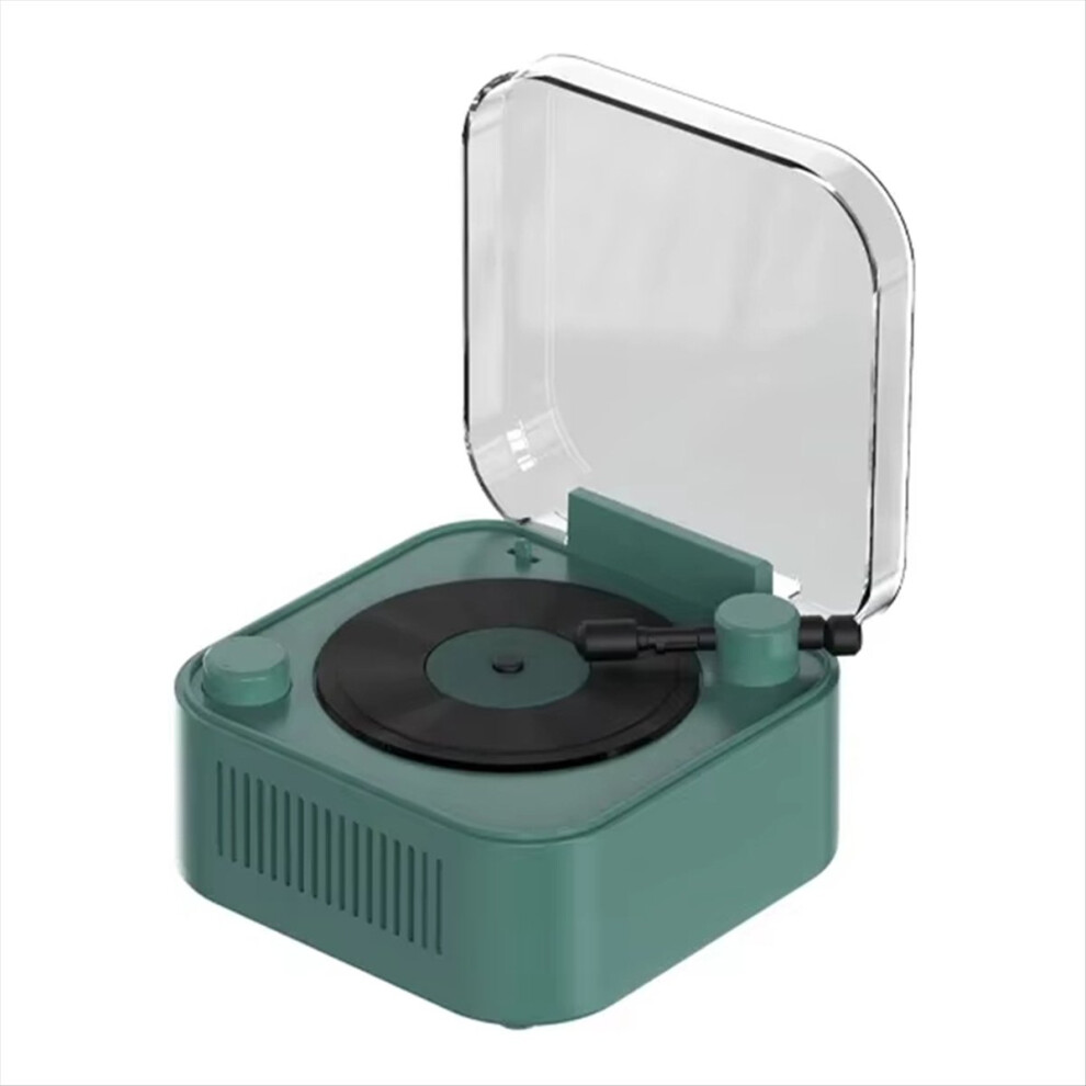 Vintage Turntable Wireless Bluetooth Speaker Long Battery Life Mini Creativity Decorative Sound Box Dark Green