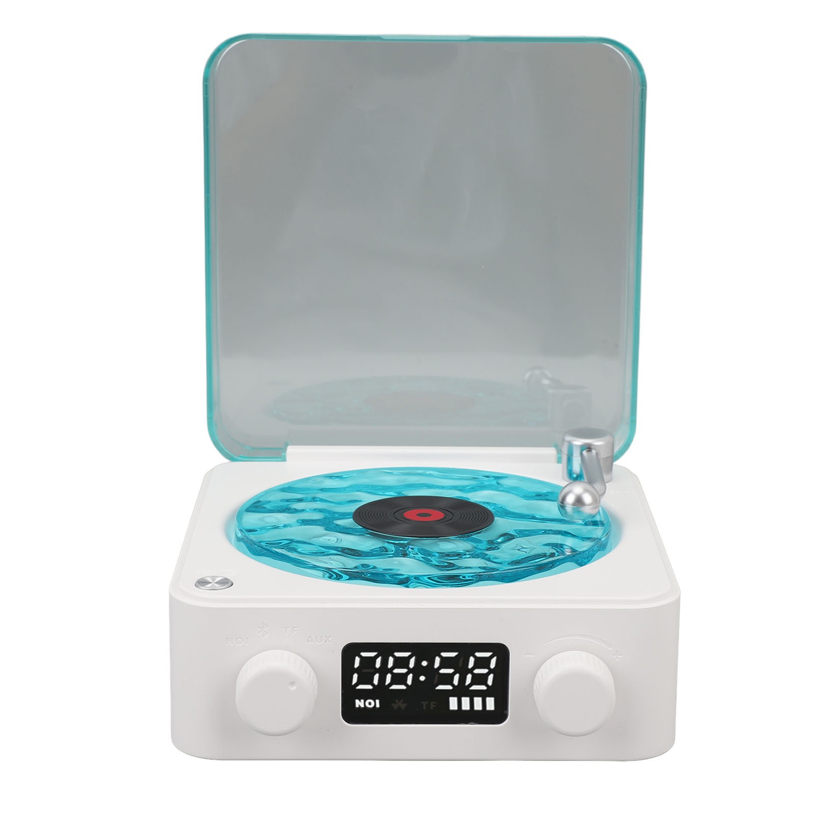 Vintage Record Player Bluetooth Speaker 4 Modes Portable Wireless Turntable Stereo Speaker with Clock and Soft Night Light for Home Bedroom