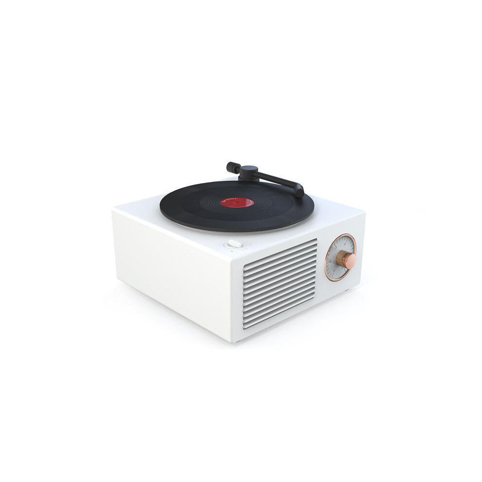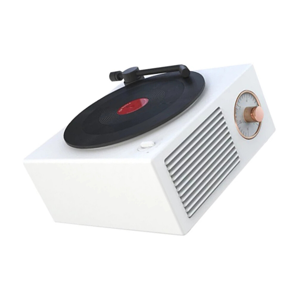 Vintage Turntable Wireless Bluetooth Speaker Long Battery White