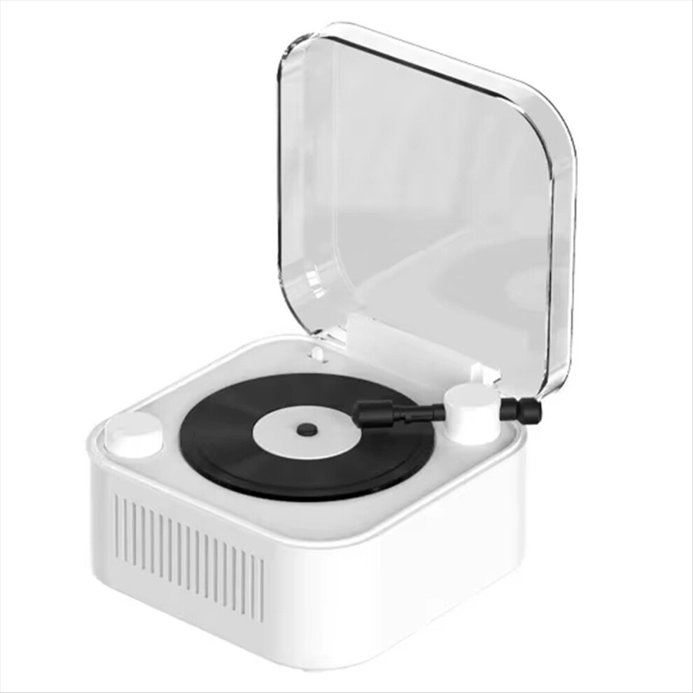 (White) Turntable Wireless Speaker Stereo Mini Sound Box Record Player Home