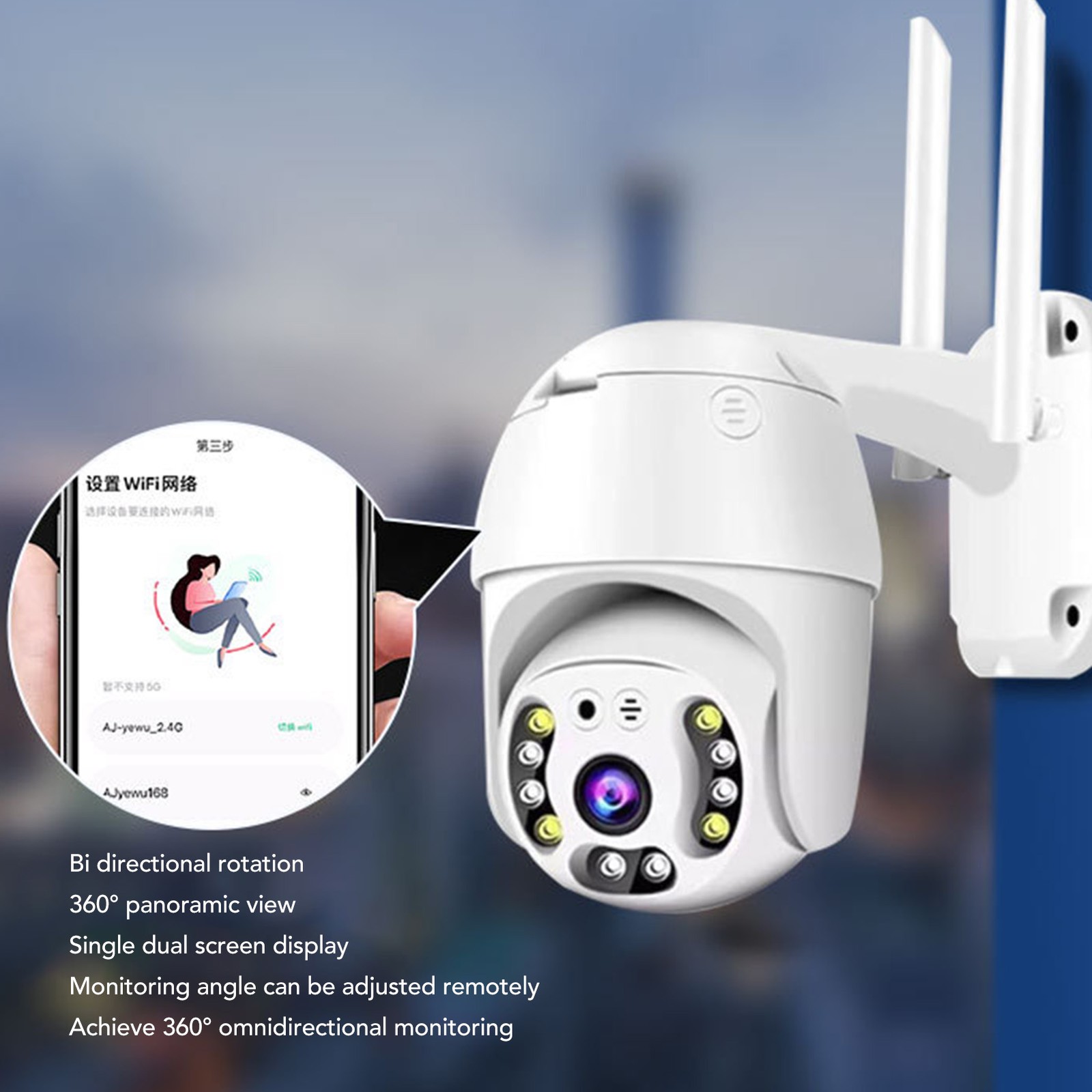 Wireless Webcam Dual Light 3MP IP66 360 Degree Rotation Wall Mounted Remote Outd