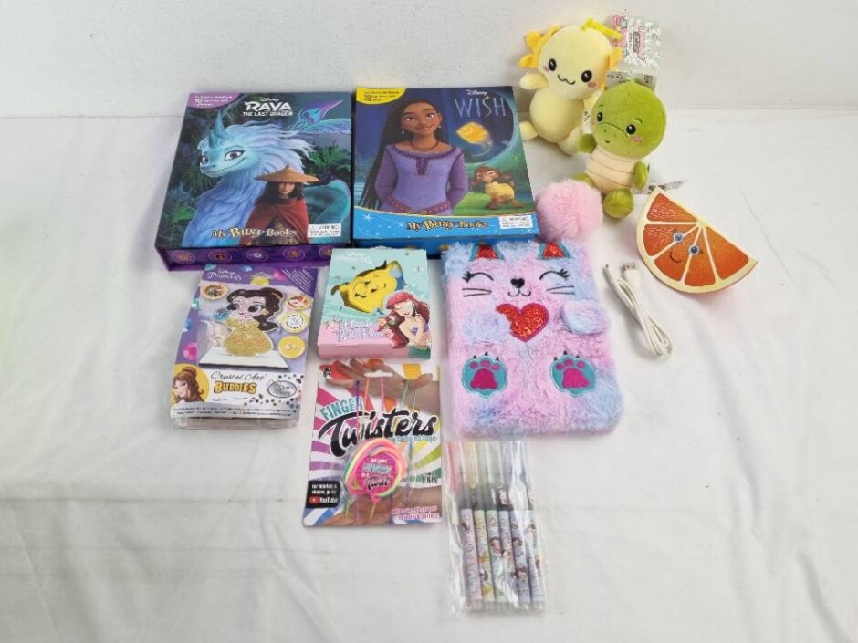 Disney 10pcs Kids Bundle Raya & Wish My Busy Books Kawaii Soft Toys Flounder Bath Fizzer Crystal Art