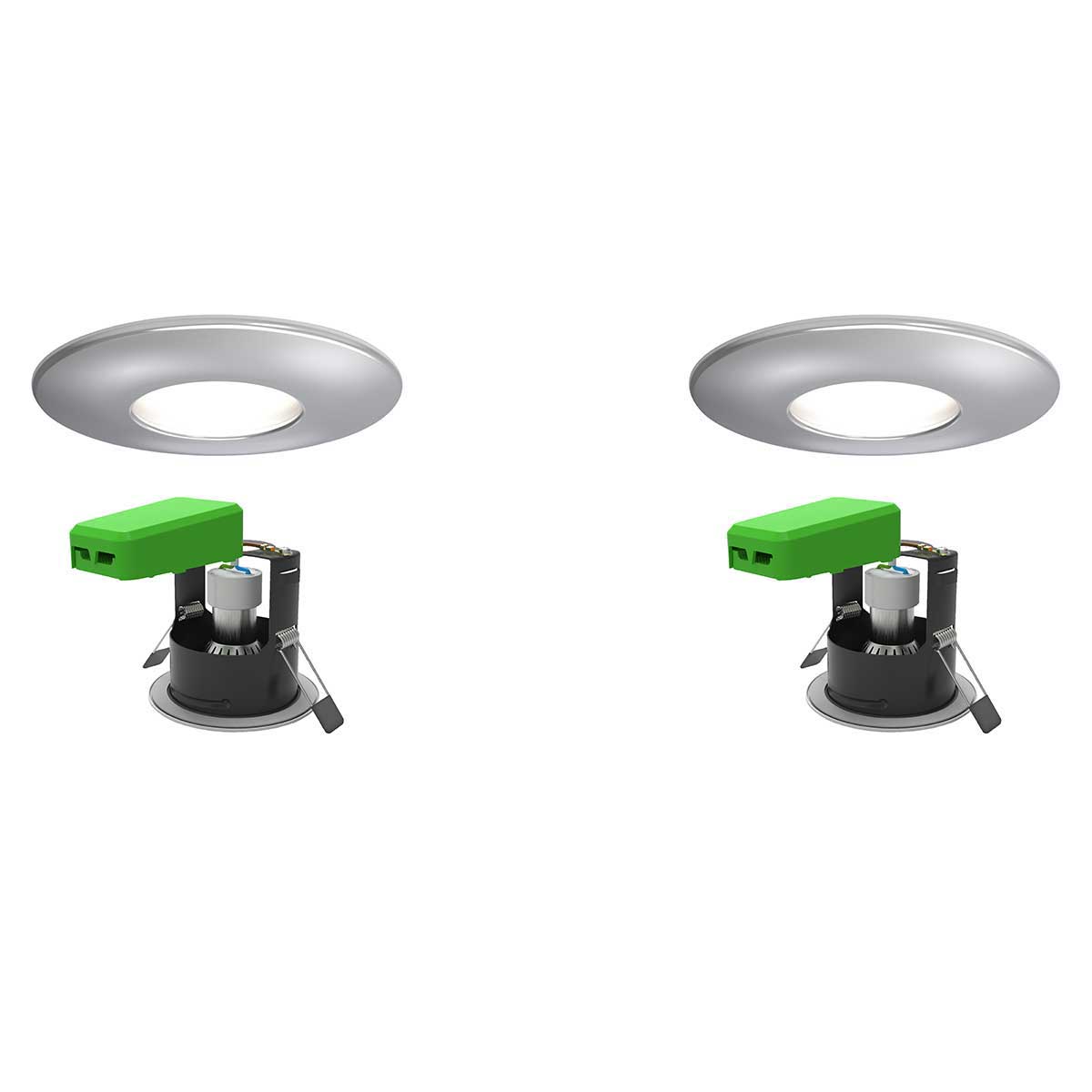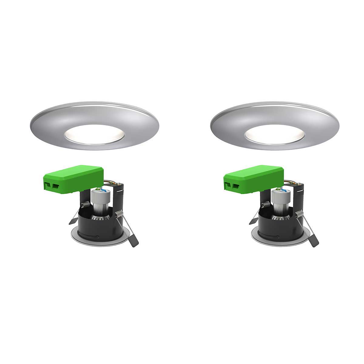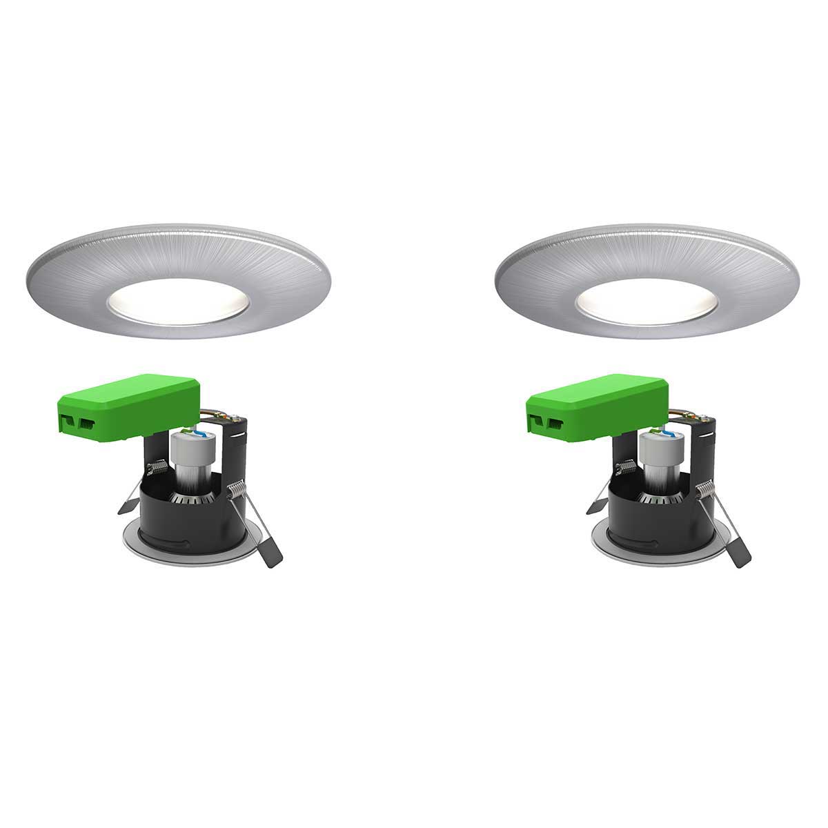 4lite WiZ Connected Smart LED Fire Rated Downlight IP20 GU10 Satin Chrome WiFi/BLE Twin Pack, Satin Chrome