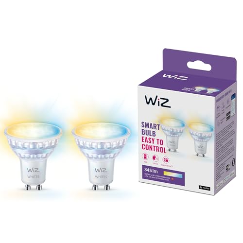 WiZ Smart LED Glass Bulb, GU10, 50W, Shades of White, Smart LED Connected WiFi Works with Alexa, Google Assistant & HomeKit, App Control for Home Indoor Lighting, Bedroom, Energy Monitoring, 2 Pack