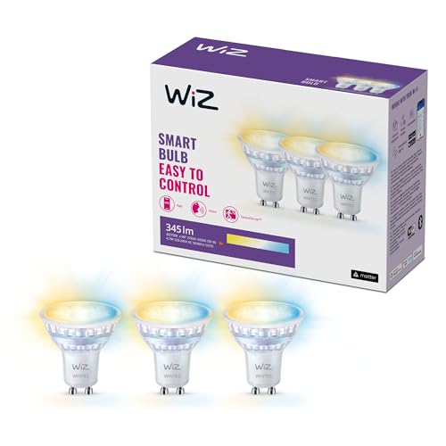 WiZ GU10 Smart LED Glass Bulb, Smart LED Connected WiFi Works with Alexa, Google Assistant & HomeKit, Wi-Fi/Bluetooth,Dynamic Scenes on App Including Relax Mode Bedroom, 3 Pack, 50W