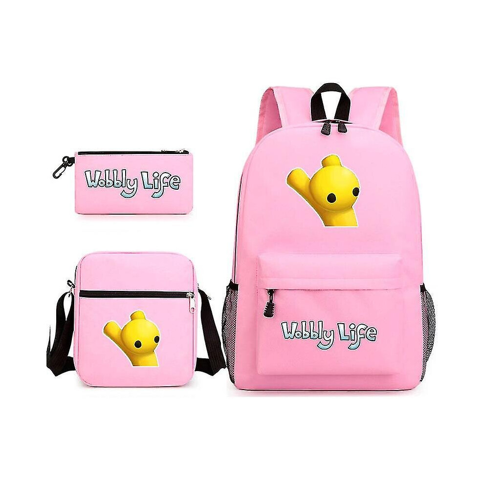 (1) Wobbly Life 3pcs School Backpack Shoulder Bag Pen Bagz