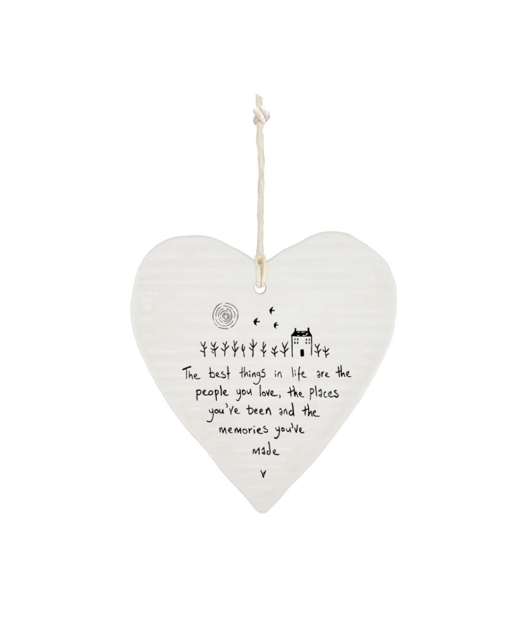 East Of India Best Things In Life Wobbly Heart Shaped Ceramic Hanging Plaque