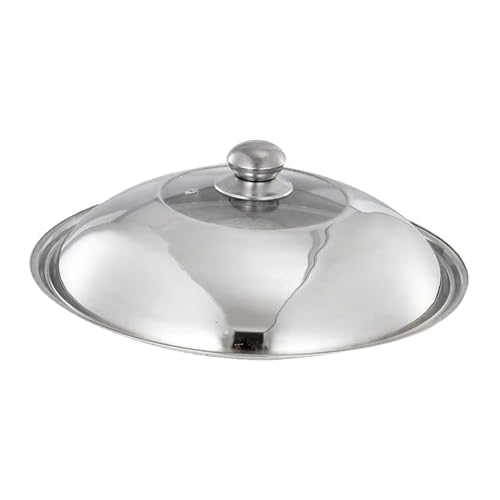 kesurpae Universal Rustproof Stainless Steel Wok Lid Designed To Retain Heat And Cooking Efforts Ensuring Hands Are Protected During Cooking For Safer Experience, Silver, Knob Handle