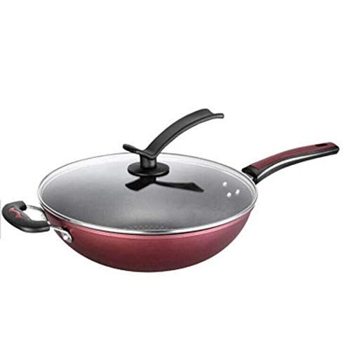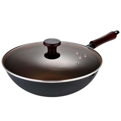 HXFFXHF Non-Stick Wok and Glass Lid Induction-Safe Smokeless Stir-Fry Pans Heat Insulating Anti-Scald Hand Shank