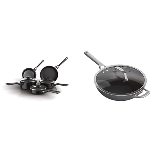 Ninja ZEROSTICK Classic 5-Piece Pan Set [CW55000UK] Aluminium Cookware & Ninja ZEROSTICK Premium Cookware 28cm Wok with Glass Lid, Long Lasting, Non-Stick, Hard Anodised
