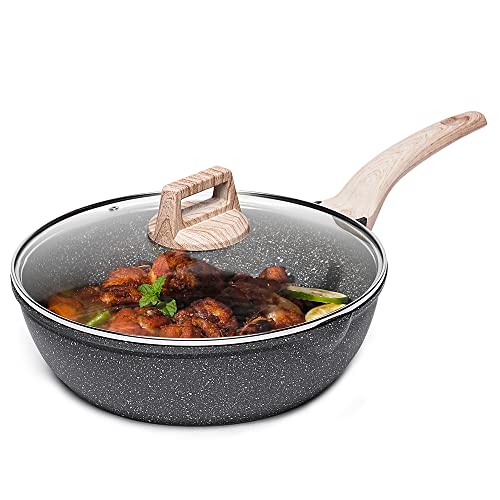 CAROTE Granite Non-Stick Wok with Lid, 28cm Stir Fry Pan, Induction Frying Pan with Lid, Induction Deep Saute Pan with Lid for Gas & Electric Stoves