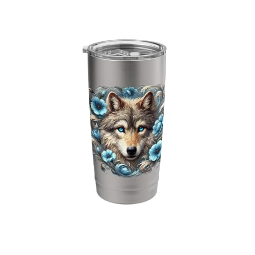 Wolf Surrounded by Flowers Stainless Steel Insulated Tumbler