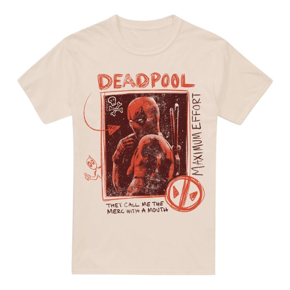 (M, Natural) Deadpool & Wolverine Mens Maximum Effort Deadpool T-Shirt