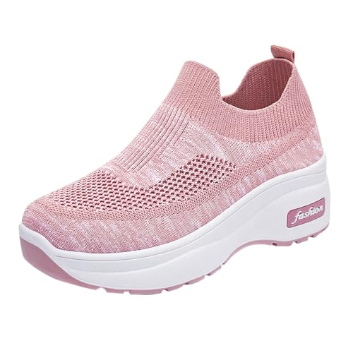 Woman Trainers Platform Slip on Trainers for Women Orthopedic Arch Support Diabetic Walking Shoes Breathable Mesh Tennis Sneakers Comfortable Round Toe Athletic Steel Toe Casual Shoes Pink