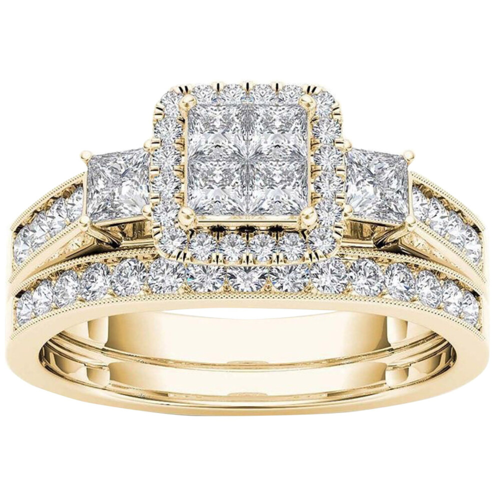 YUEHAO accessories Rings Women 925 Silver,Gold Ring White Rhinestone Wedding Jewelry Rings Size 5-11 Gold 9