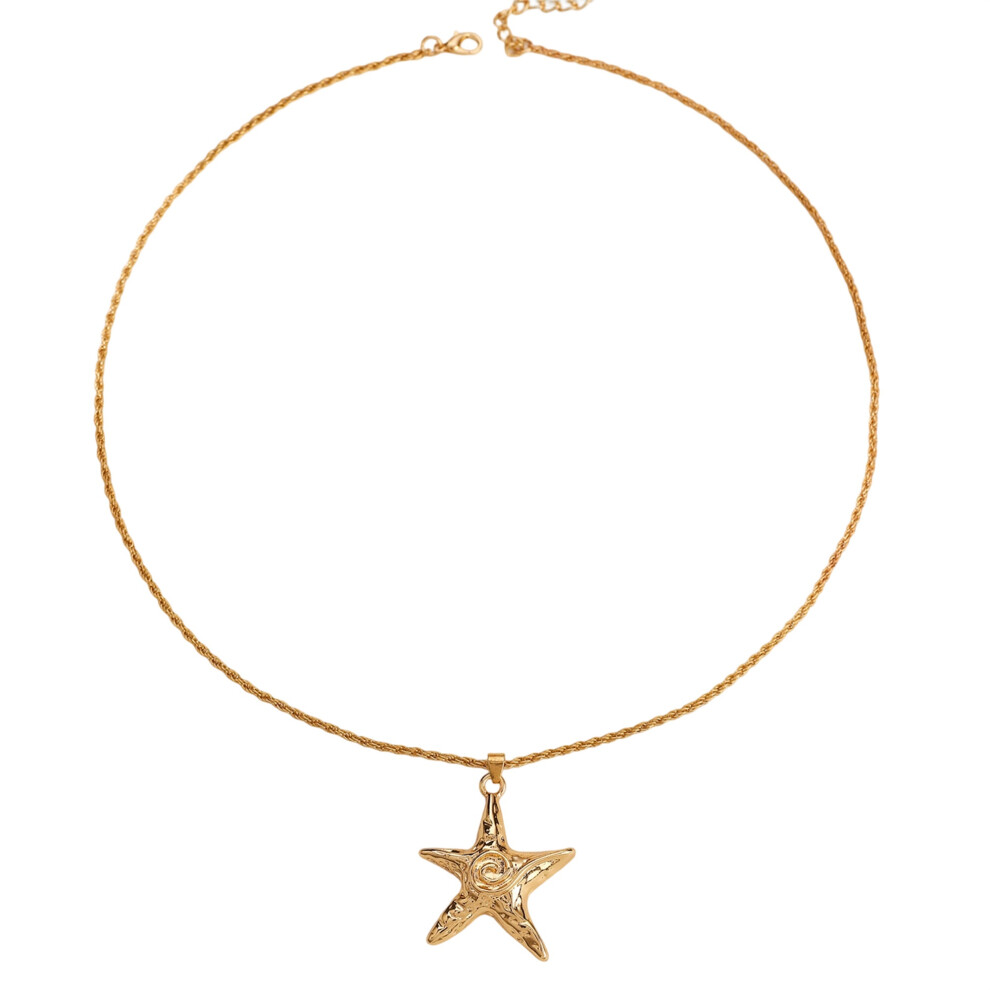 (Necklace, Gold) Women Ring, Gold Starfish Adjustable Ring Jewelry Birthday Present for Daily Party