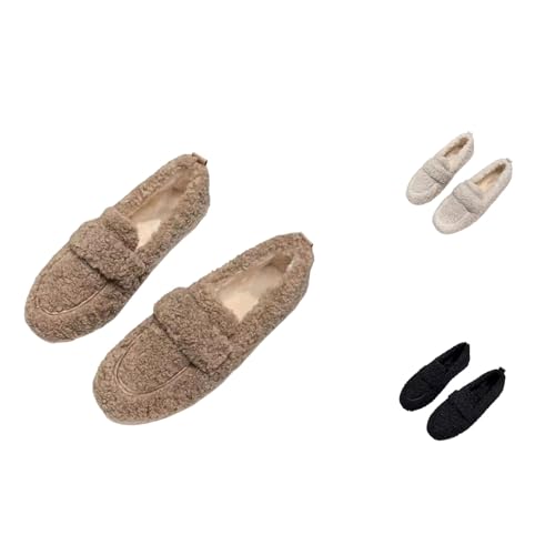 XELIUS Comfy Women's Winte Loafers Fur Loafers For Women Winter Shoes Mule Shoes Rubber Outsole (brown,3.5)
