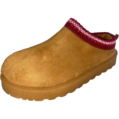 Shoes By Emma Womens Platform Chunky Sole Faux Suede Fleece and Faux Fur Lined Braided Trim Mule Slipper Boots (Tan, UK Footwear Size System, Adult, Women, Numeric, Medium, 6)