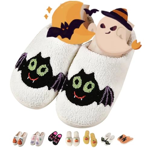 Slippers Ladies Unisex Halloween Cute Fuzzy Womens Size 7 Slip on Women Indoor Shoes Mule Comfy Warm Shearling Lightweight Breathable Memory Foam Anti-Slip House Christmas Men Black 3.5