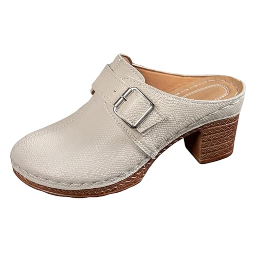 orthopedic shoes for women,New Women's Baggy Toe Mule Shoes With Thick Heel Buckle Semi Sandal Retro Texture Casual Sandal Women's Breathable Walking Sandal (White, 5)