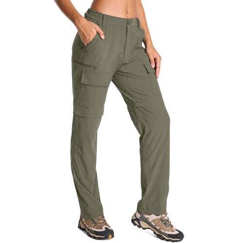 mosingle Women's Walking Trousers Cargo Pants Quick Dry UPF 50 Travel Golf Pants Lightweight Camping Work Pants Zipper Pockets #6608-Army Green-S