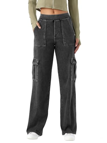 LaiEr Women's Denim Walking Trousers Straight Leg Pants Casual Work Bottoms Outdoor Streetwear Womens Stretch Cargo Pants with Pockets for Casual Outdoor Hiking Jeans.(Dark Grey L)