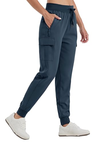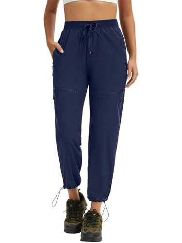 Willit Women's Walking Cargo Trousers Lightweight Waterproof Hiking Joggers Quick Dry Athletic Outdoor Pants Navy Blue S