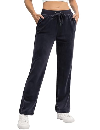 TACVASEN Women's Walking Trousers Casual Lounge Trousers Velour Sweatpants Ladies Workout Athletic Jogger Trousers Pockets Black