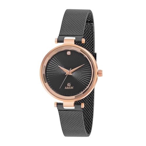 Arion Watches for Women | 26mm Ladies Watch with Black Mesh Strap | Rose Gold Analog Timepiece with Gift Box Included | Suitable for All-Occasion | Womens Watches UK | Quartz Designer Wristwatch