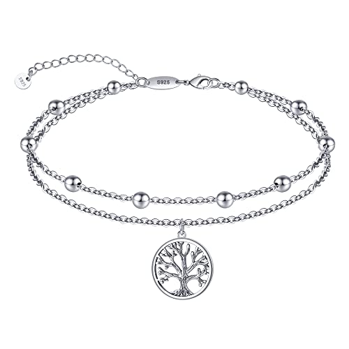 CHIC & ARTSY Ankle Bracelets for Women 925 Sterling Silver Anklets for Women Adjustable Hypoallergenic Foot Chain with Tree of Life Anklet