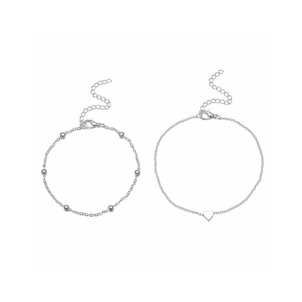 4 PCS Anklets for Women Ankle Bracelets Silver Heart Pendant Ankle Chain Stylish Women's Anklets Adjustable Double Layered Love Beads Foot Chain Ankle Bracelet Beach Anklet for Ladies Girls Beach
