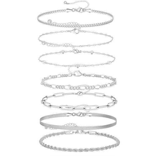 Jovivi Silver/Gold Anklets for Women,Stainless steel Ankle Bracelets Silver