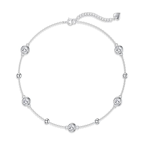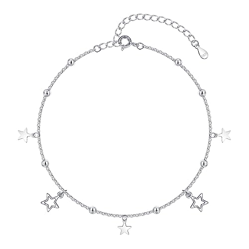 Bewenda Ankle Bracelets for Women Girl, 925 Sterling Silver Anklets Ankle Chain with Stars, Summer Beach Anklet Women's Anklets, Adjustable 22+5cm Foot Chain Beach Jewellery for Girls- white gold