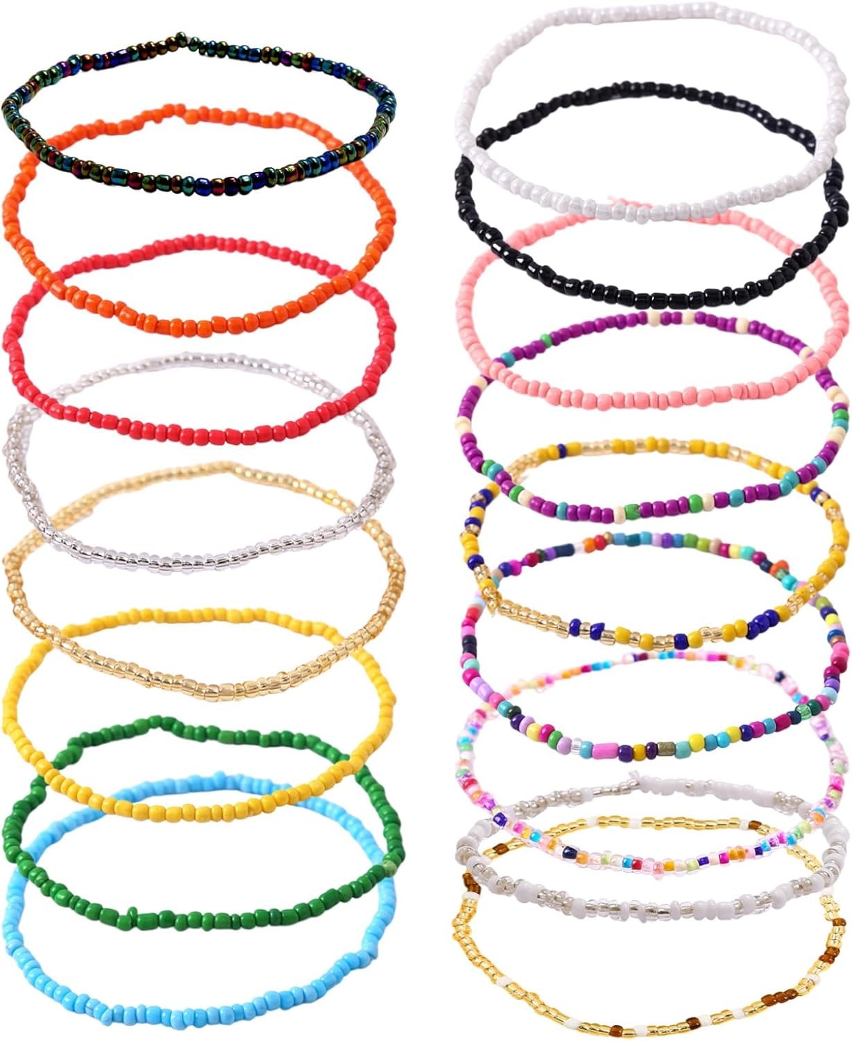 Jormftte 17pcs Beaded Anklets for Women, Bohemian Elastic Ankle Bracelets...
