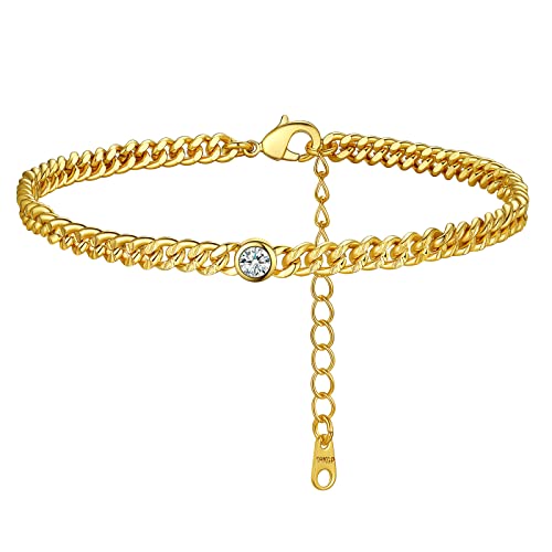 FindChic Cuban Anklets for Women Copper Ankle Bracelets for Womens Charm Anklet Beach Jewellery Gold Foot Chain Diamond Birthstone Women's Jewellery