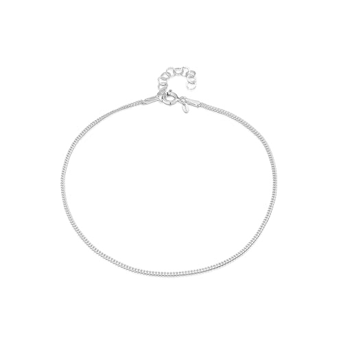 Amberta Italian Sterling Silver Anklet for Women 925 | Adjustable Ankle Bracelets for Women Beaded Heart Summer Jewellery: Curb