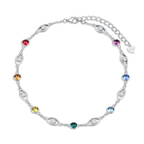 AOBOCO Anklets for Women Sterling Silver Ankle Bracelets with Crystals 9+2'' (Evil Eye)