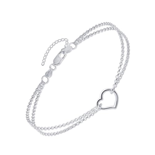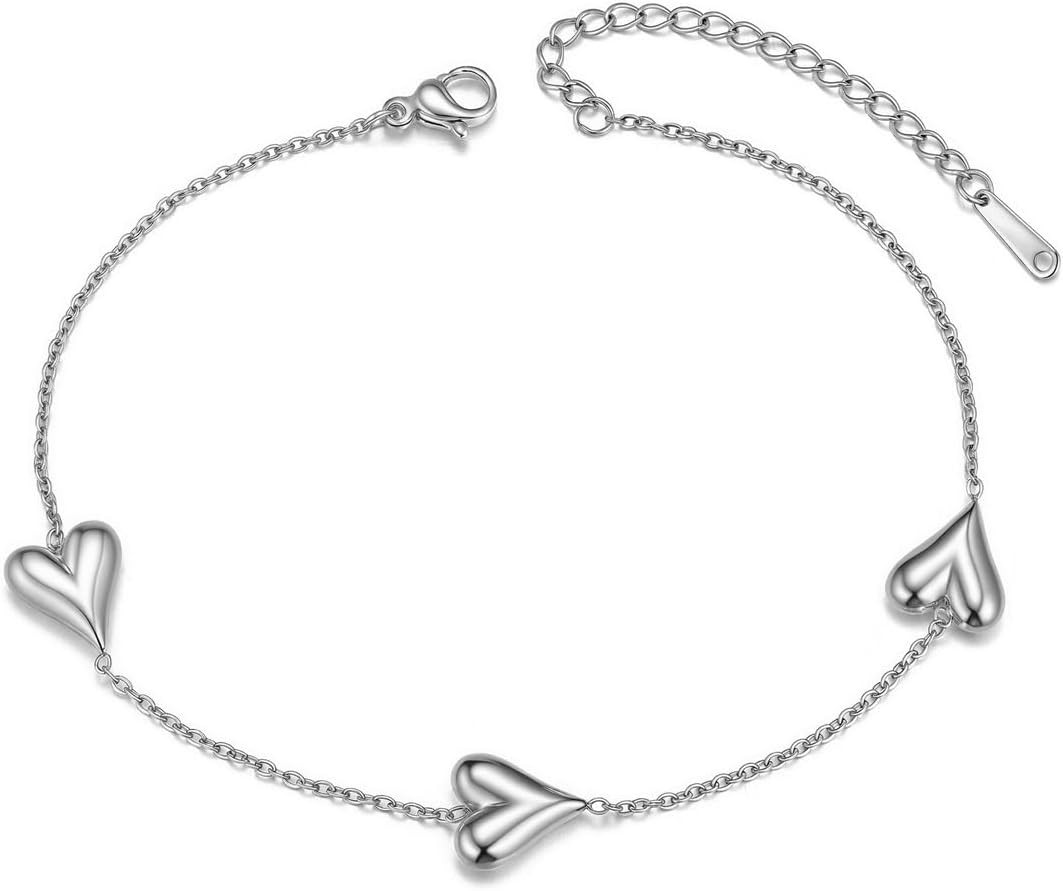 Amberta Italian Sterling Silver Anklet for Women 925 | Adjustable Ankle Bracelets for Women Beaded Heart Summer Jewellery: Bismark