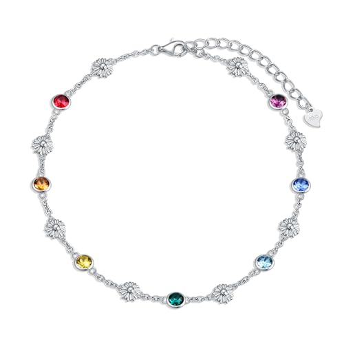 AOBOCO Anklets for Women Sterling Silver Ankle Bracelets with Crystals 9+2'' (Daisy)
