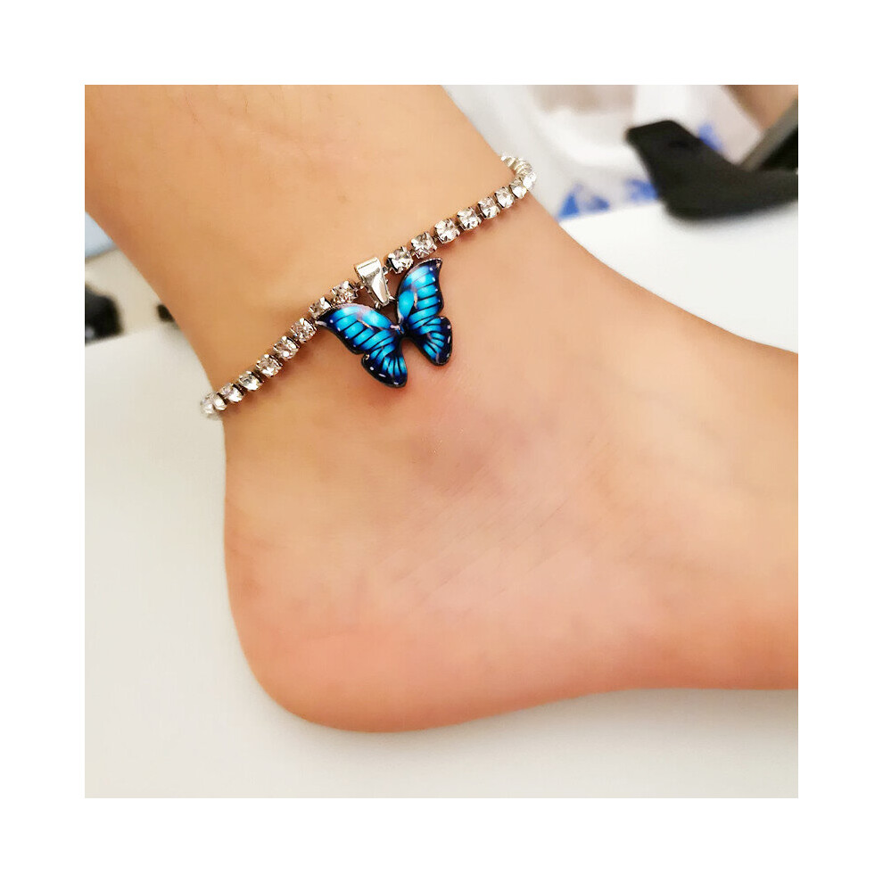 Boho Butterfly Anklets for Women Rhinestones Chain Ankle Bracelets Silver Stainless Steel Goth Accessories Jewelry