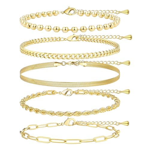 Gold Anklets for Women Gold,Layered Ankle Bracelets for Women Gold,Adjustable La