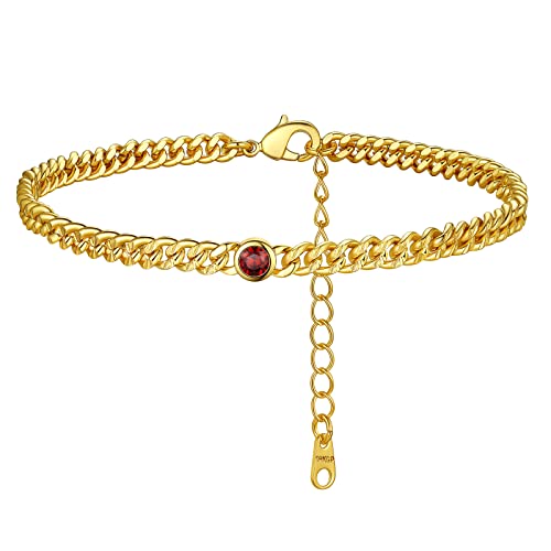 FindChic Cuban Anklets for Women Copper Ankle Bracelets for Womens Charm Anklet Beach Jewellery Gold Foot Chain Garnet Birthstone Women's Jewellery