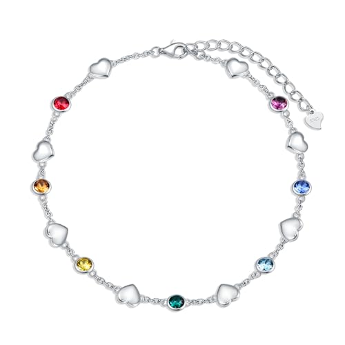 AOBOCO Anklets for Women Sterling Silver Ankle Bracelets with Crystals 9+2'' (Heart)
